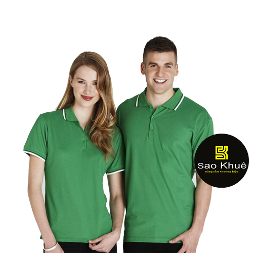 Áo màu xanh lá phối viền cổ và viền tay sọc trắng sang trọng, chuyên nghiệp cho doanh nghiệp, công ty.